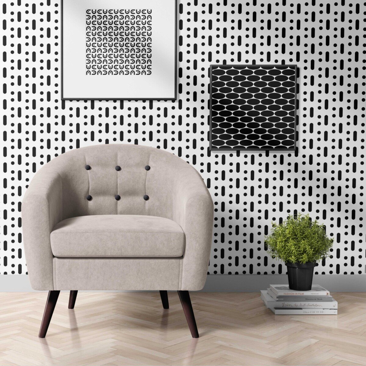 Seamless black and white minimal geometric patterns.