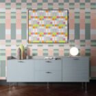 Midcentury modern geo stripe pattern with a color palette inspired by warm and arid locales like Taos New Mexico.
