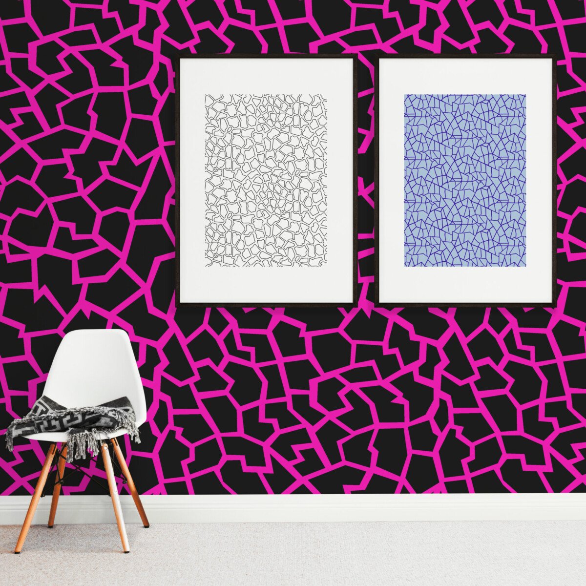 Seamless colorful abstract shape pattern inspired by Earth’s tectonic plates.